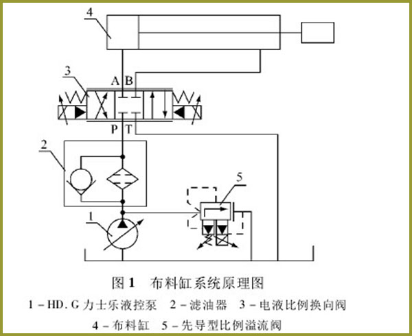 粉煤灰磚機的布料缸系統,其動力源為力士樂HD. G液控泵,排量V與先導壓力X,成正比例關系,X,由控制系統的比例溢流閥調定,X,工作區間為1一2 MPao HD. G液控泵的可達流量為364 L/min。