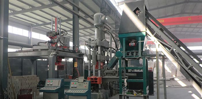 而推出新型液壓耐火材料壓磚機(jī)后,安全事故不再發(fā)生,因?yàn)樵O(shè)備是全自動控制的,下料、出塊都是設(shè)備自動完成的;效率大大得到提高,一次可生產(chǎn)多塊,生產(chǎn)周期為15s,不用擔(dān)心人工操作熟練程度對產(chǎn)量的影響;不管是什么異型產(chǎn)品,都可以通過更換模具的方式生產(chǎn)出來;工人勞動強(qiáng)度降低了、工作環(huán)境改善了,加速了企業(yè)向標(biāo)準(zhǔn)化、現(xiàn)代化、自動化方向發(fā)展。